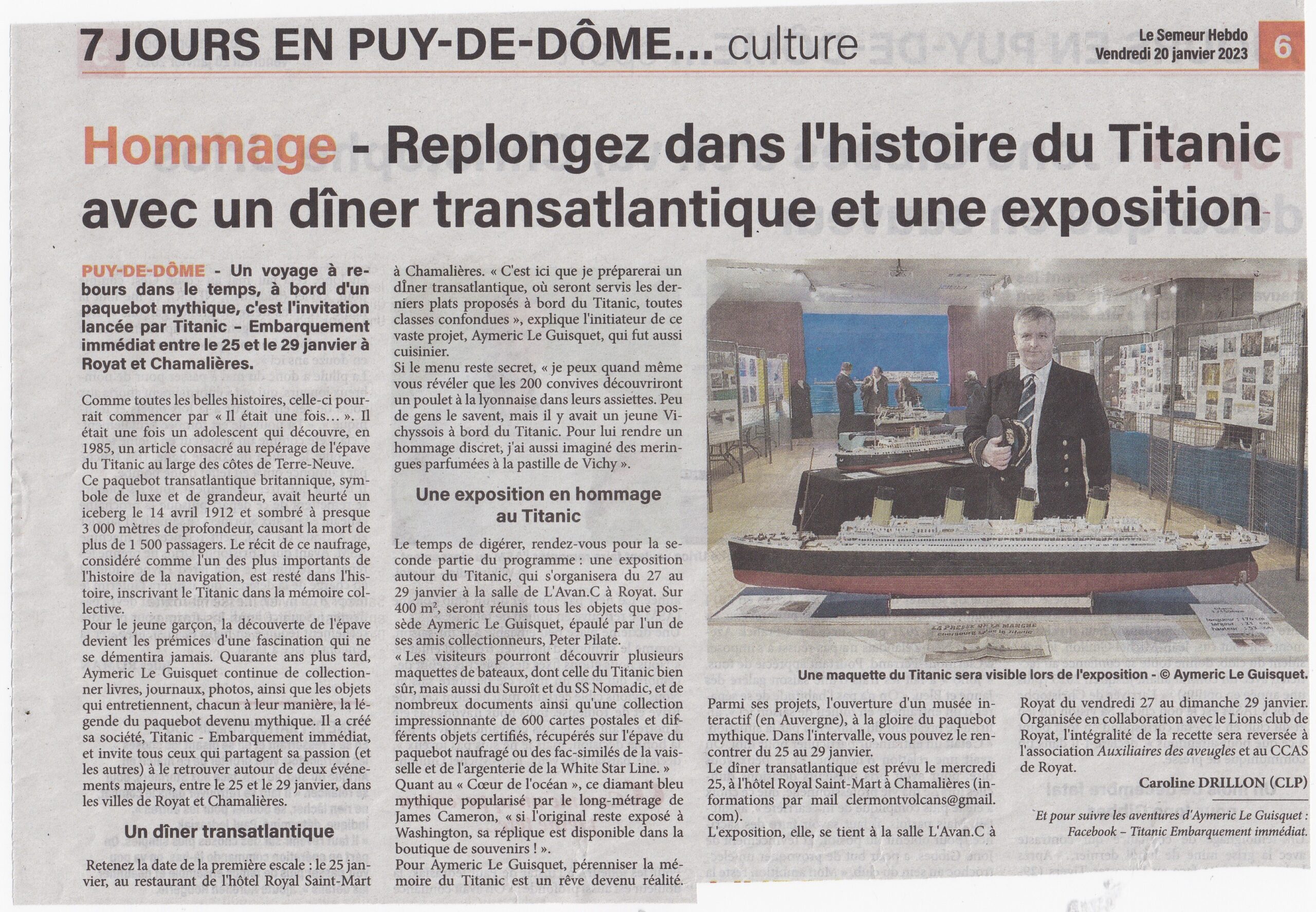 merci paul henri de partager votre passion, nous n’avons pas eu le temps de démarrer notre collaboration pour la création de mon musée titanic en auvergne, vous serrez toujours dans mon coeur et mes pensées et un espace vous sera dédié dans mon musée. au revoir mon ami vous allez me manquer