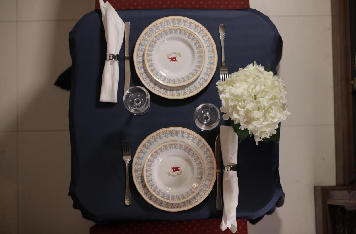 If you’d like authentic touches, replica “Wisteria” china used in Titanic’s First Class Dining Saloon would be the perfect addition to your table, painted in brown and turquoise and featuring the White Star Line logo. They are available at RMS Titanic Inc.’s online store.